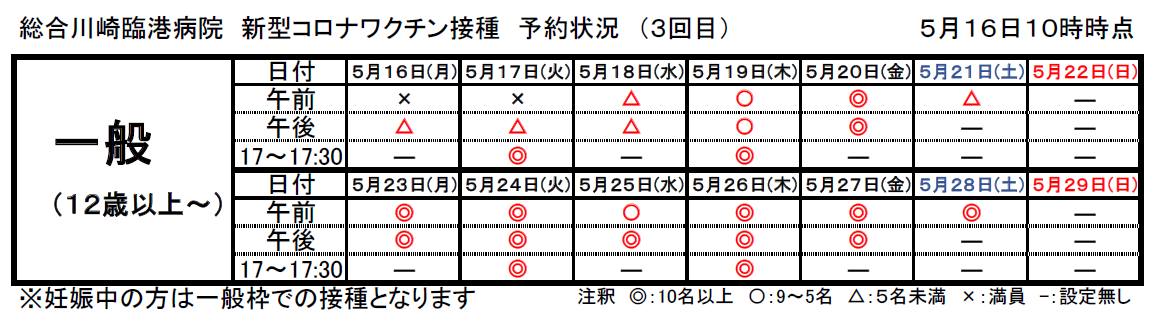 20220516 新型コロナワクチン接種 一週間の予約状況 10時 JPEG