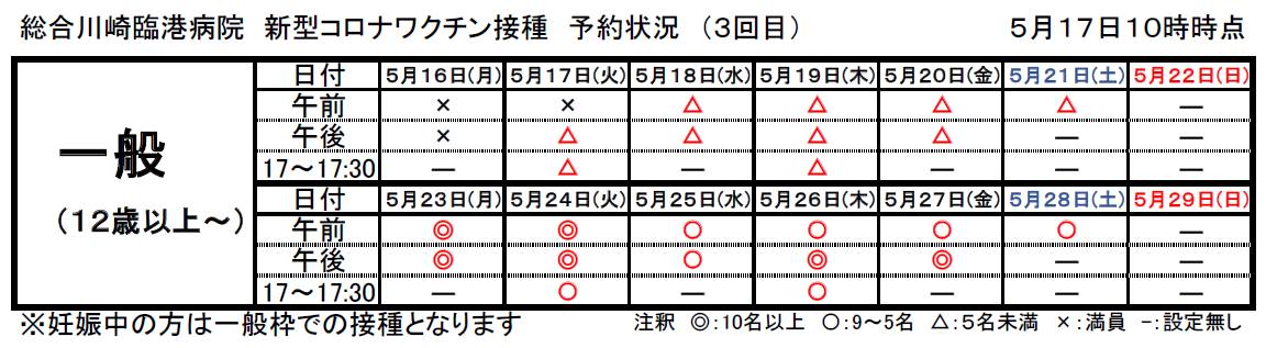 20220517 新型コロナワクチン接種 一週間の予約状況 10時 JPEG