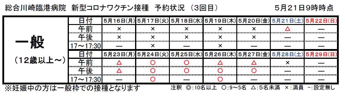 20220521 新型コロナワクチン接種 一週間の予約状況 9時 JPEG
