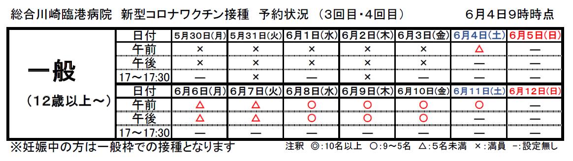 20220604 新型コロナワクチン接種 一週間の予約状況 9時 JPEG
