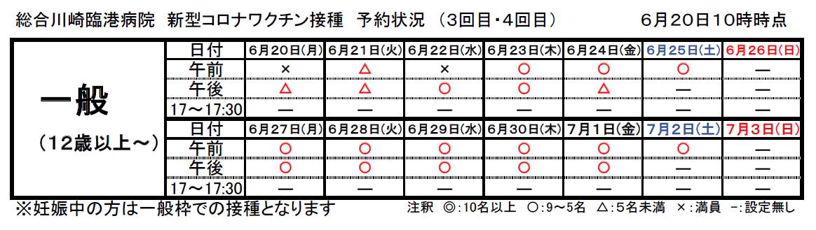 20220620 新型コロナワクチン接種 一週間の予約状況 10時 JPEG