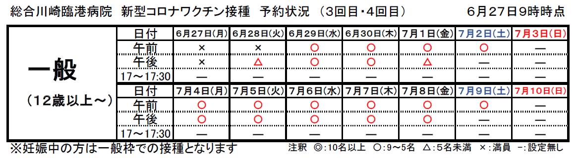 20220627 新型コロナワクチン接種 一週間の予約状況 9時 JPEG