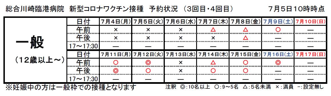 20220705 新型コロナワクチン接種 一週間の予約状況 10時 JPEG