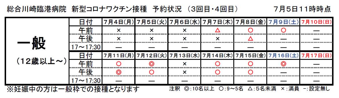 20220705 新型コロナワクチン接種 一週間の予約状況 11時 JPEG