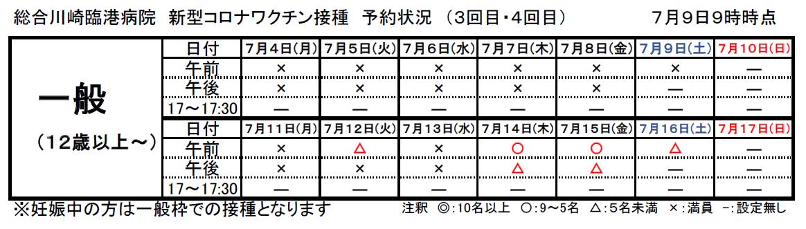 20220709 新型コロナワクチン接種 一週間の予約状況 9時 JPEG