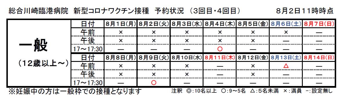 20220802 新型コロナワクチン接種 一週間の予約状況 11時 JPEG