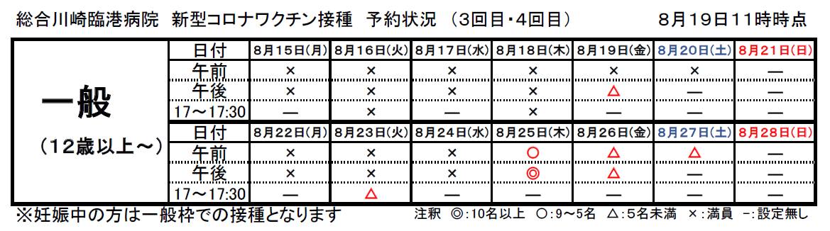 20220819 新型コロナワクチン接種 一週間の予約状況 11時 JPEG