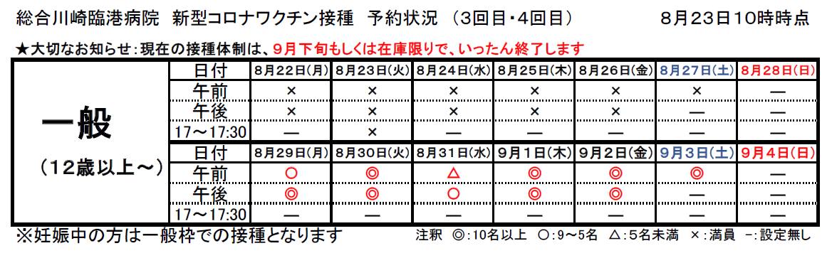 20220823 新型コロナワクチン接種 一週間の予約状況 10時 JPEG