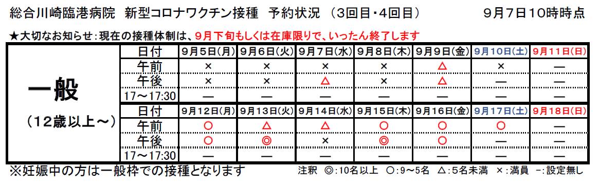 20220907 新型コロナワクチン接種 一週間の予約状況 10時 JPEG