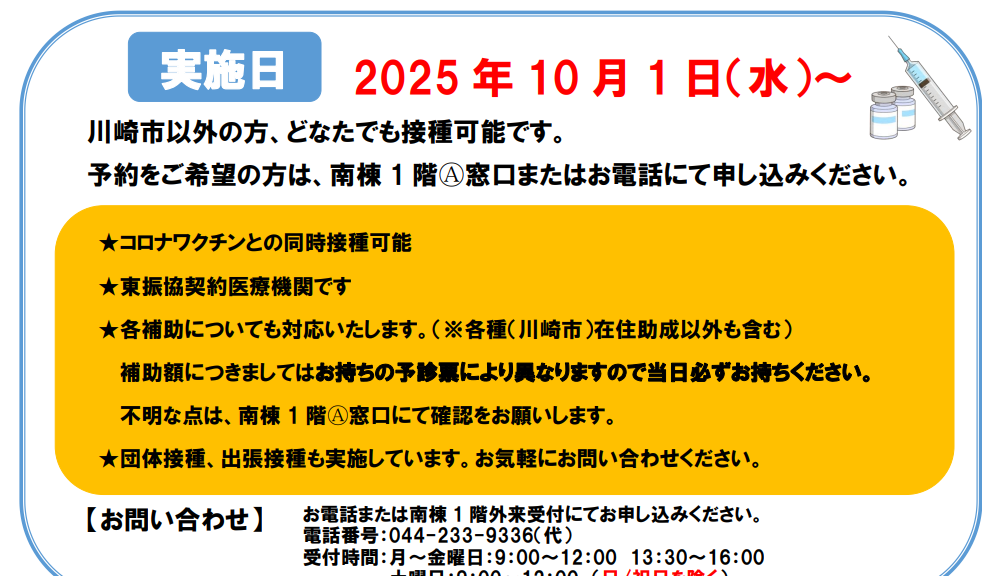 小児科インフルエンザワクチンはネット予約のみとなっております。