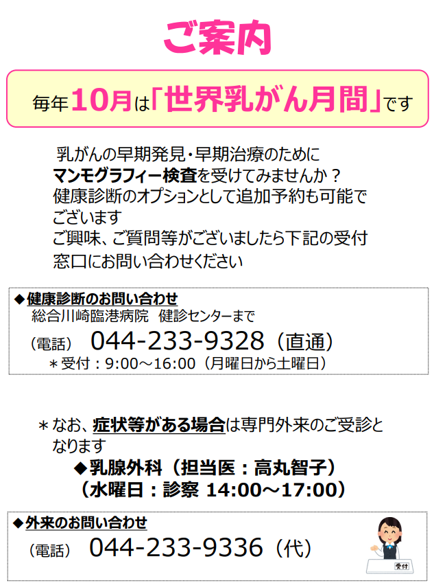 ※10月9日(木曜日)と10月30日(木曜日)は臨時休診です。