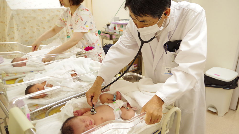 入院中に小児科医師が赤ちゃんの全身の状態を診察します。細い産道を通るため出産時に鎖骨を骨折したり、骨や関節等に問題を抱えている場合があるため、当院では整形外科医師による診察も行っています。